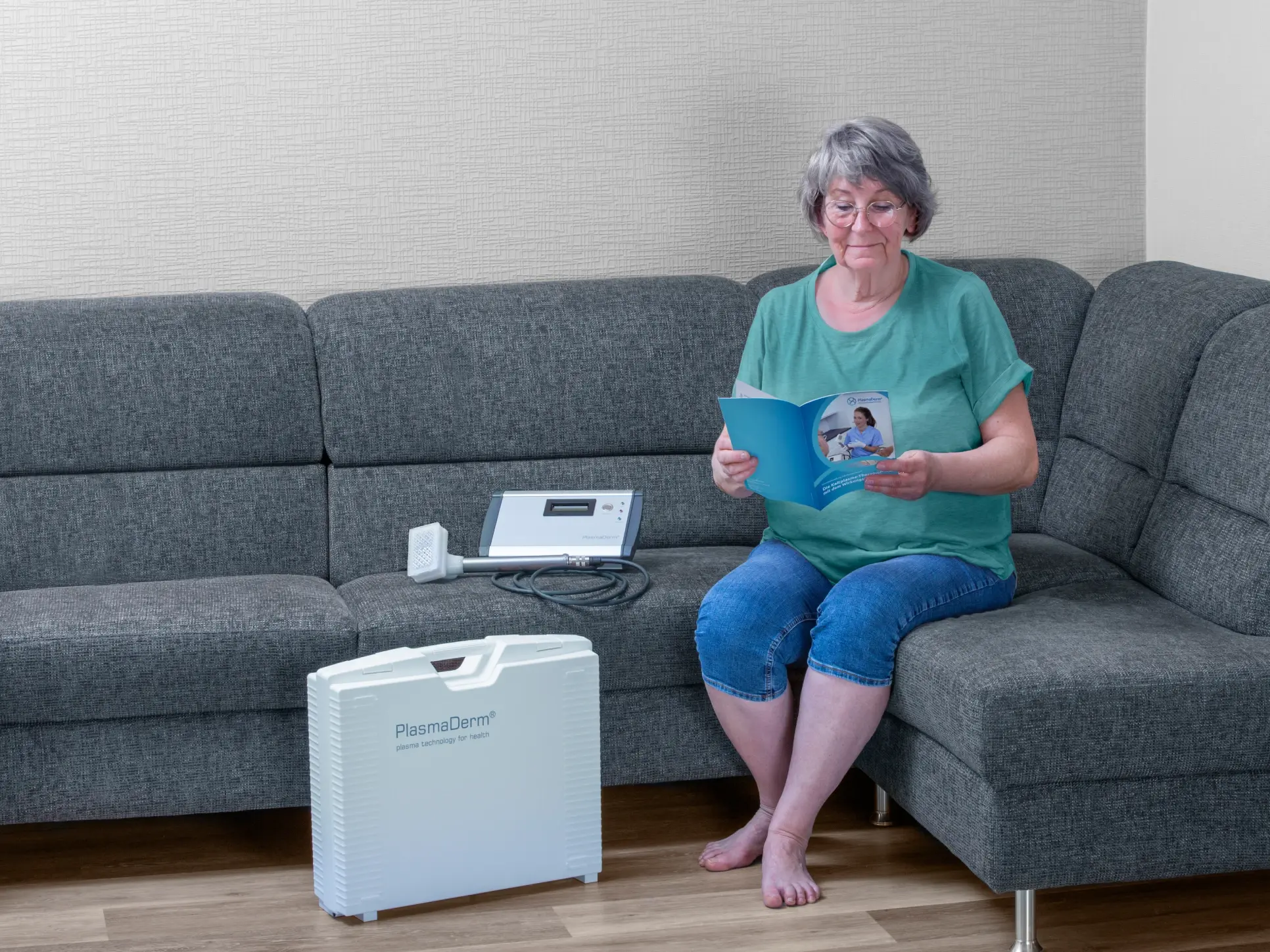 Erfahren Sie, wie Sie PlasmaDerm® zuhause anwenden können und wie das Therapiepaket Ihren Alltag entlastet.