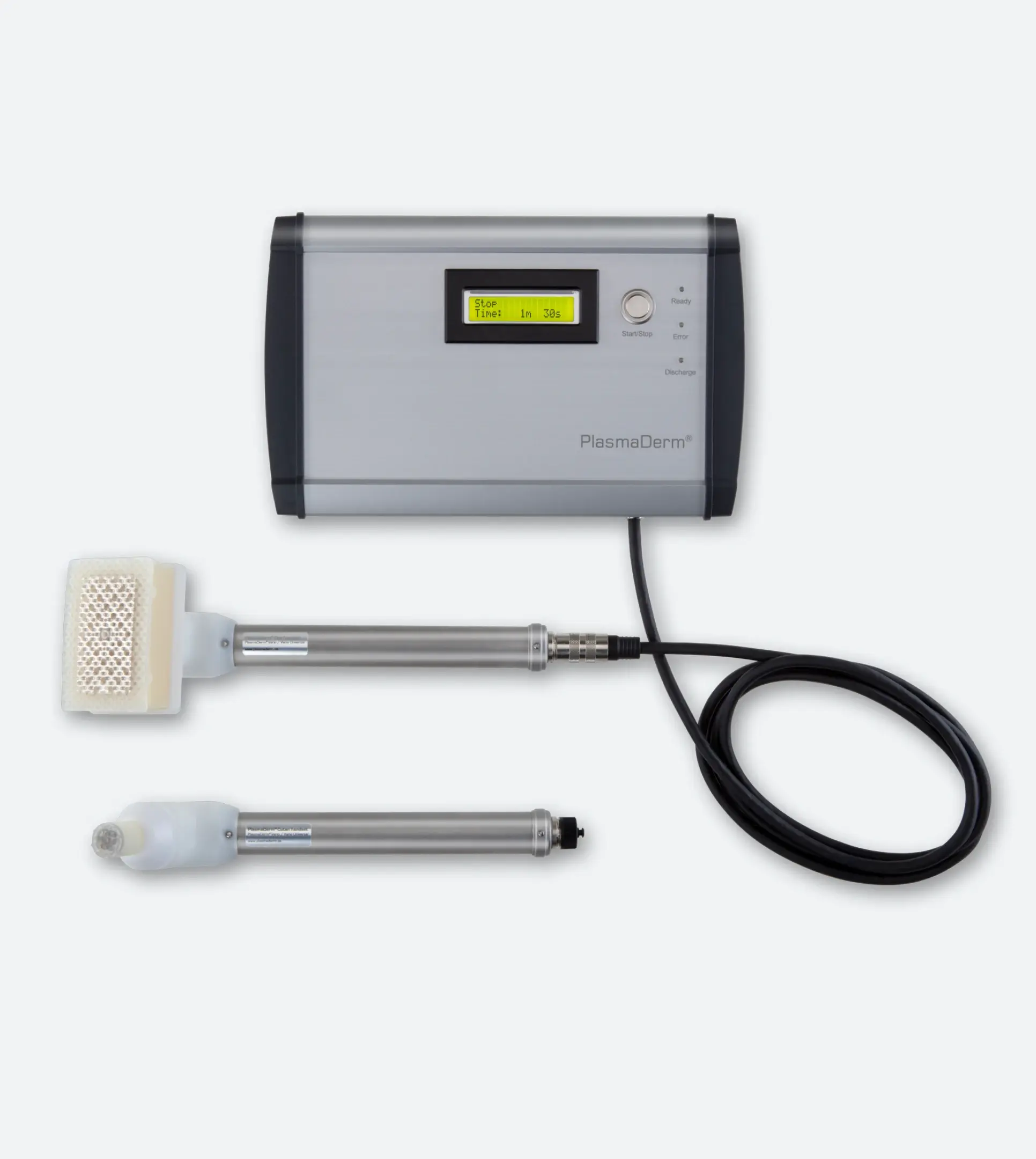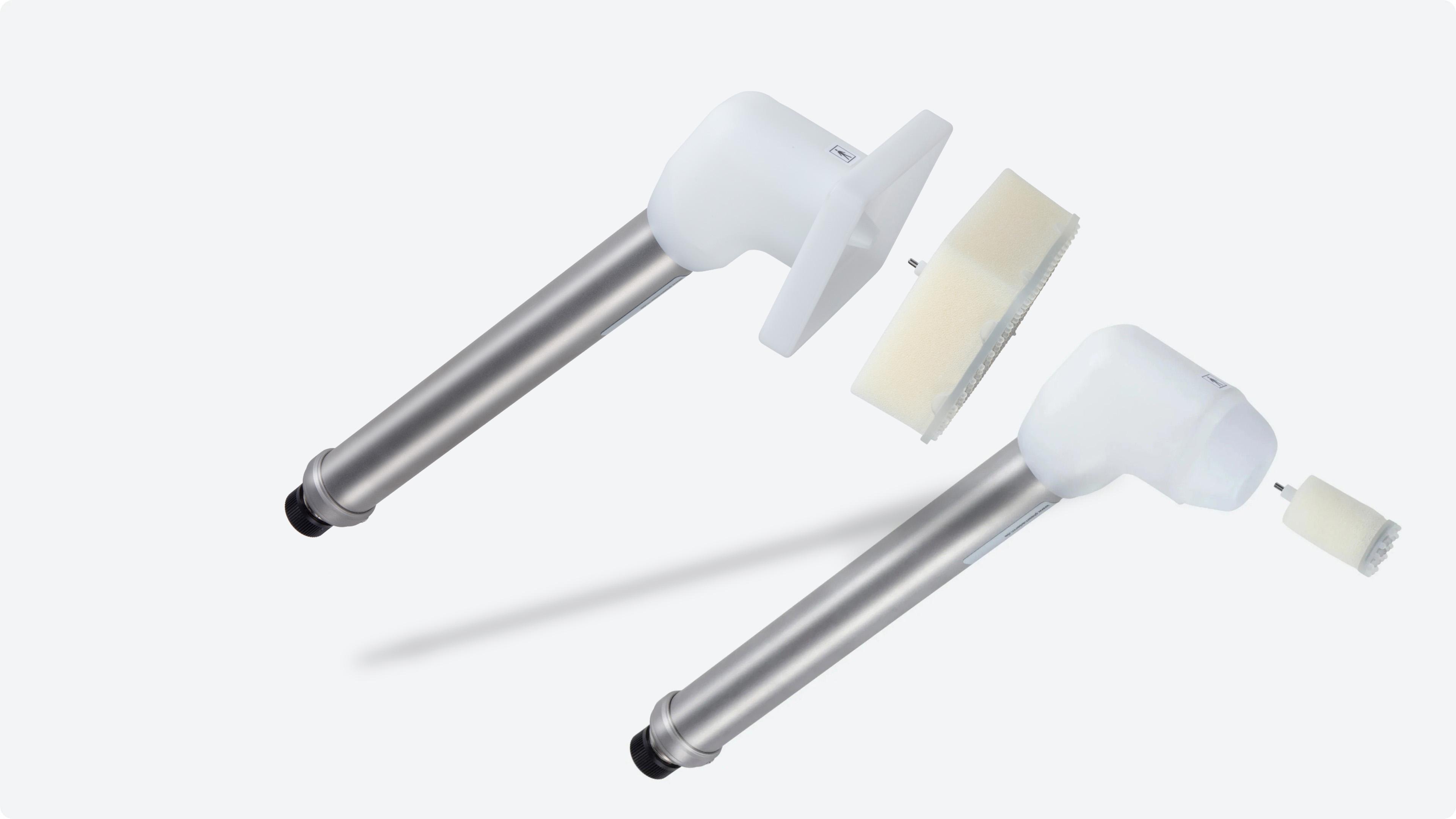 PlasmaDerm® Universal kann mit zwei Handstücken und passenden Spacern eingesetzt werden. So lassen sich große wie kleine Wunden gleichermaßen präzise, sicher und schonend behandeln – ein Vorteil, den kein vergleichbares System bietet.