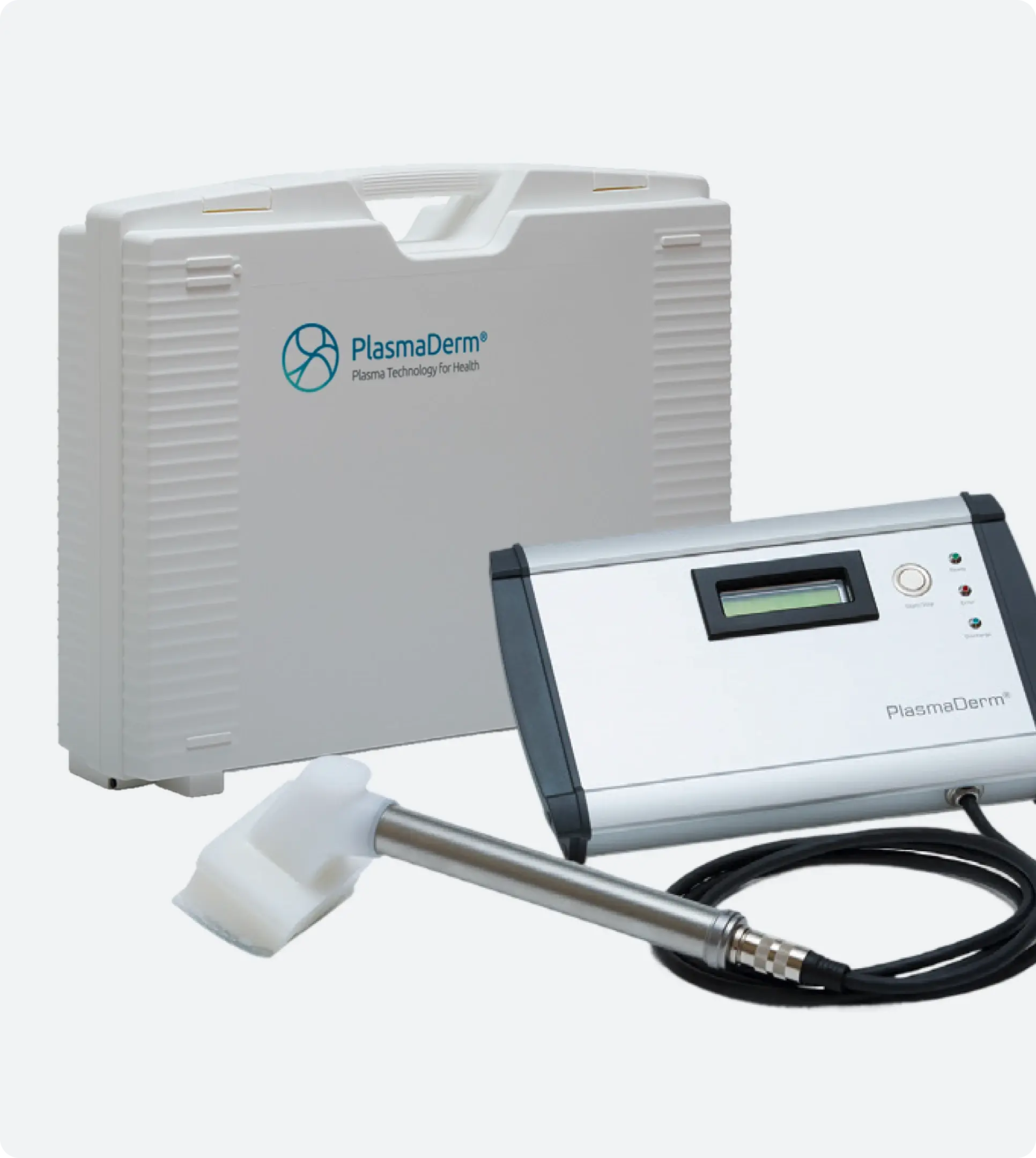The device is compact, robust and easy to transport - ideal for use in different environments. It can be prepared quickly and used reliably so that cold plasma therapy can be carried out wherever patients need it.